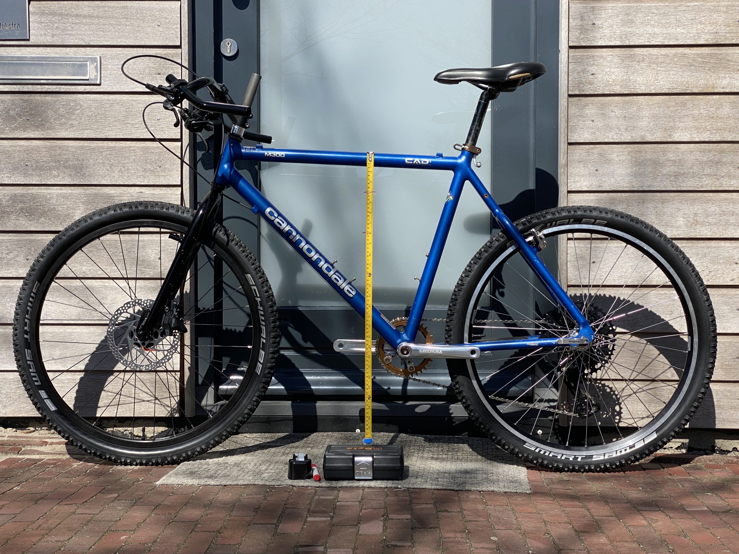 1. Attach a ruler in the middle of the top tube